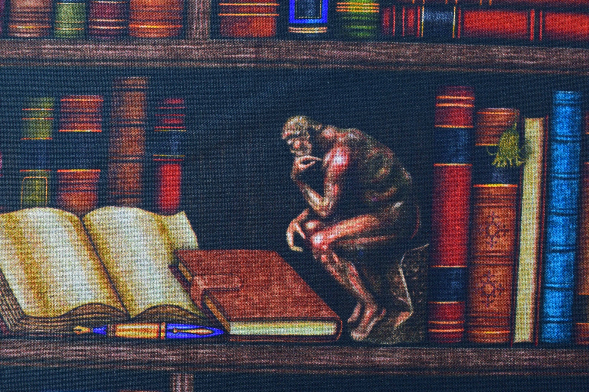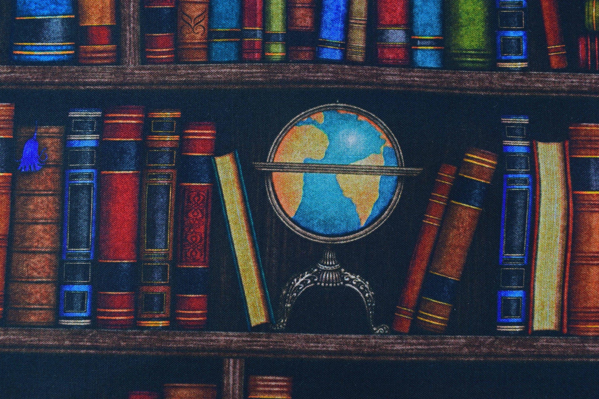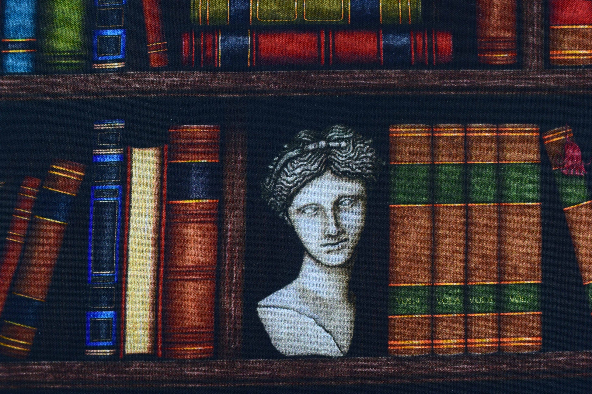 This fabric is perfect for book lovers and quilters alike! Featuring beautifully detailed shelves filled with colourful books, globes, busts, and other study-inspired accents, it brings the charm of a classic library into your sewing projects.