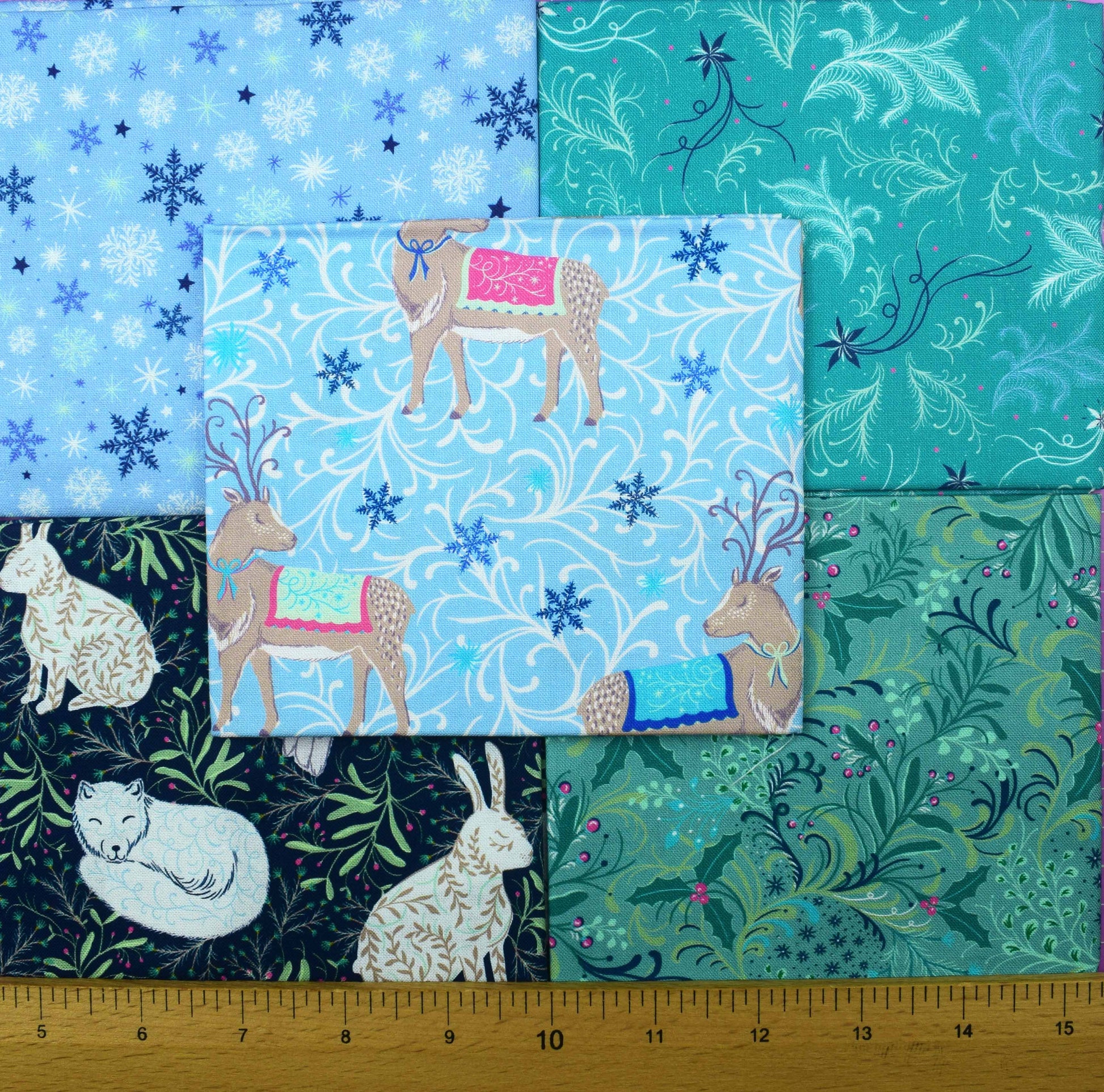 Create stunning winter-themed quilting projects with this Arctic Animals Fat Quarter Bundle! This set includes fabrics adorned with charming snowflakes, arctic foxes, hares, and reindeer, as well as frost pattern blenders. Perfect for creating cosy and festive quilts and home décor. Add a touch of the Arctic to your crafts today!