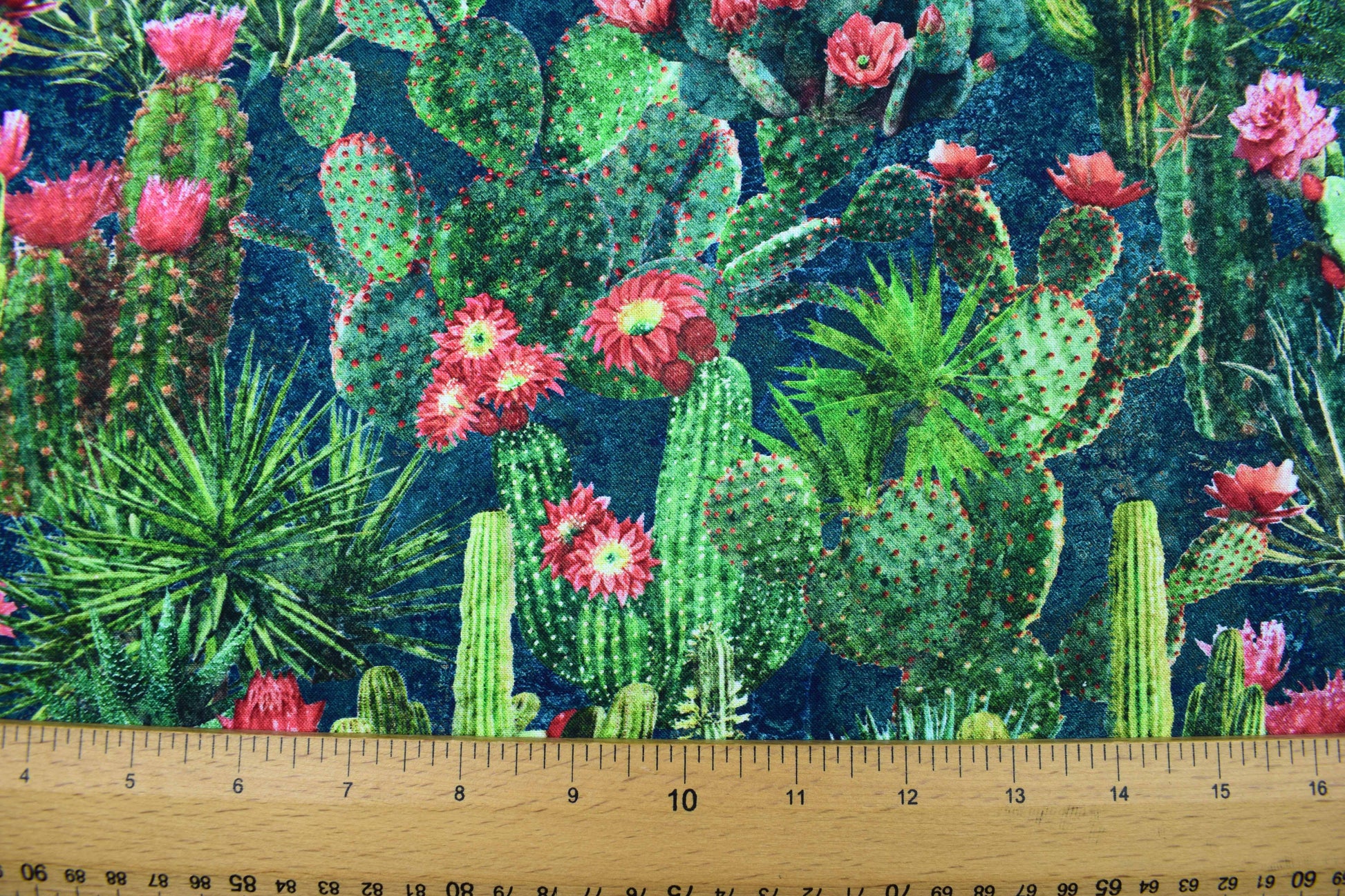 Bring the breath taking beauty and rich colours of the American Southwest into your home with our Sedona Spirit Cactus Fabric. This stunning design captures a lush, vibrant desert garden, bursting with life against a deep, dramatic background.